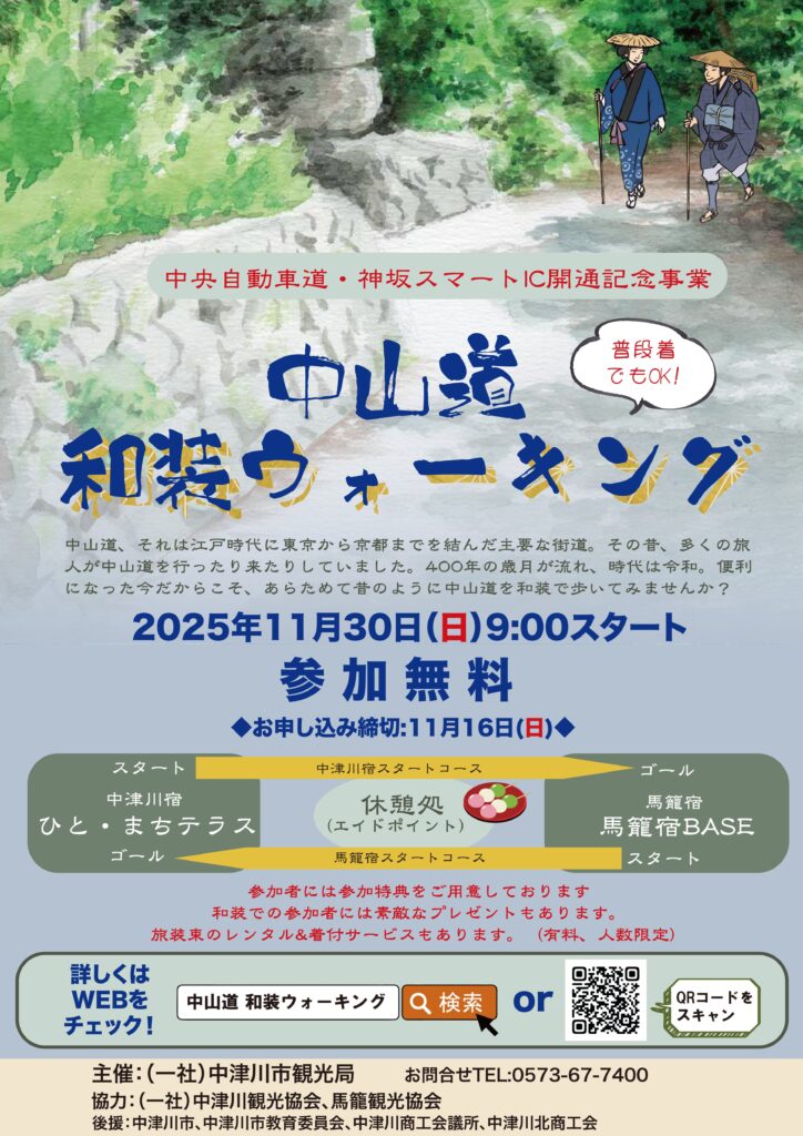詳細については、下記の中津川市観光局サイト又はチラシをご確認下さい。