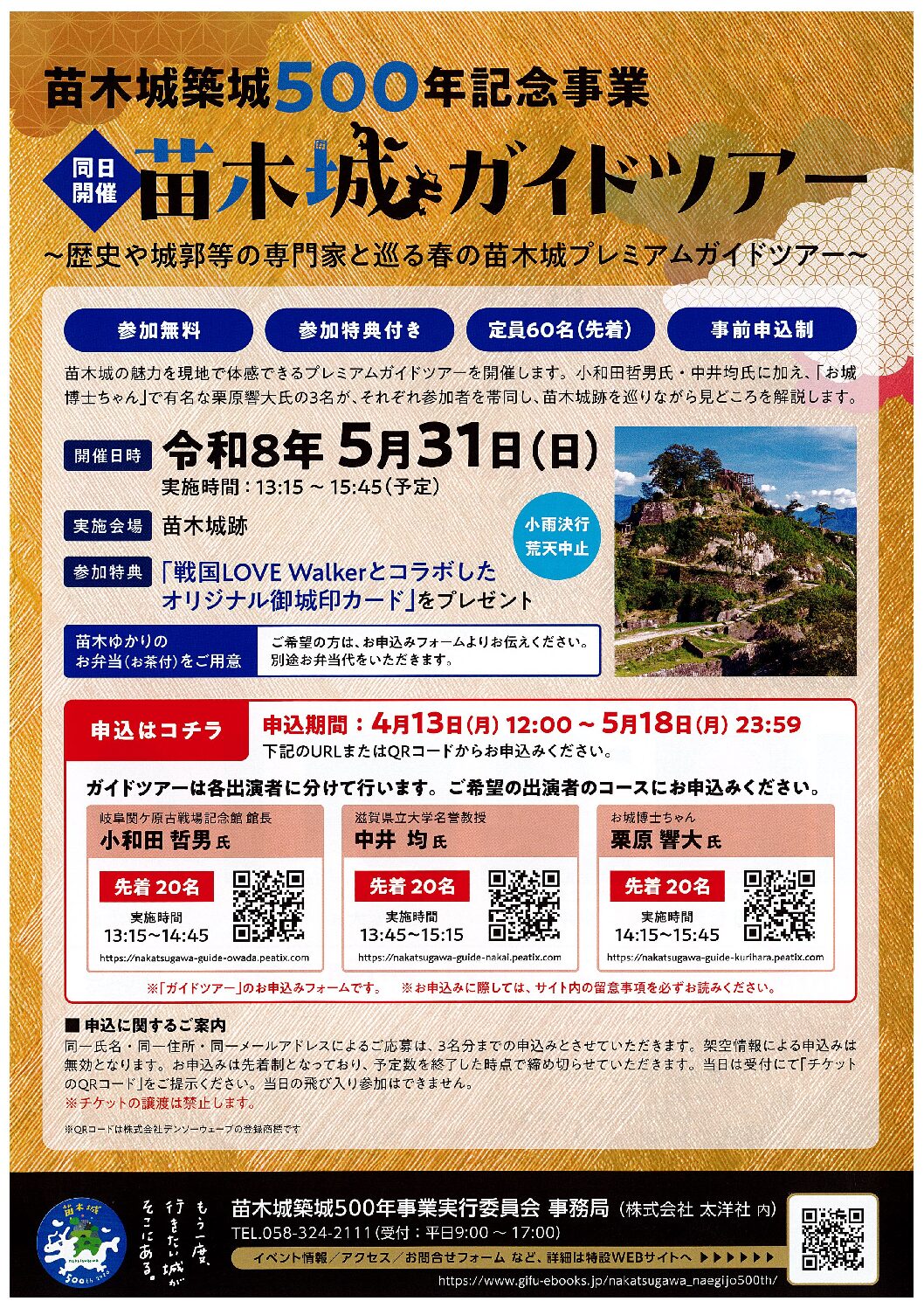また、同日には『苗木城ガイドツアー』も開催されます。